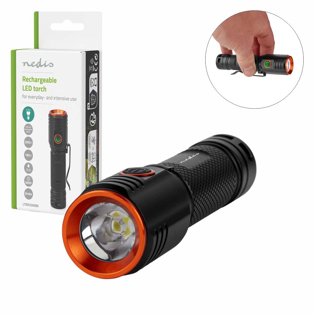 – Lanterna em miniatura de alumínio robusto– Intensidade luminosa: 2000 lumens– Grau de proteção: IPX6– Distância máxima: 180m– Vários modos de luz– Bateria: 18650 2200mAh (inc.)