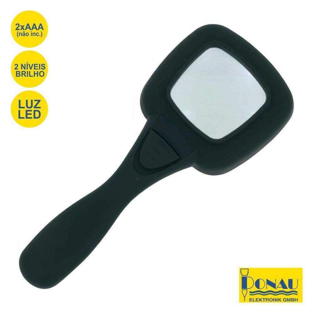 – Lupa de mão c/ luz LED– Ampliação: 4X– Medida lente: 48x48mm– Luz LED c/ 2 níveis instensidade– Alimentação: 2x AAA (não inc.)