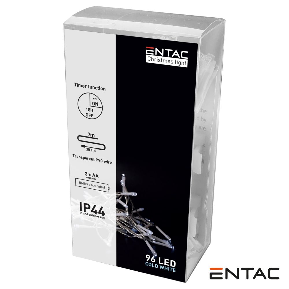 – Grinalda LED c/ temporizador– Número de LEDS: 96, Comprimento: 7m– Temperatura de cor: 6400K– Grau de proteção: IP44– Temporizador: 6h-ON / 18h-Off– Alimentação: 3x AA (não incl.)