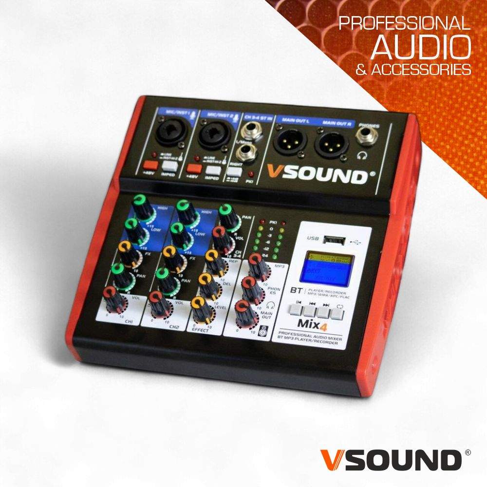Mesa De Mistura 4 Canais C/ BT/LCD/USB/PC/PHANTOM VSOUND