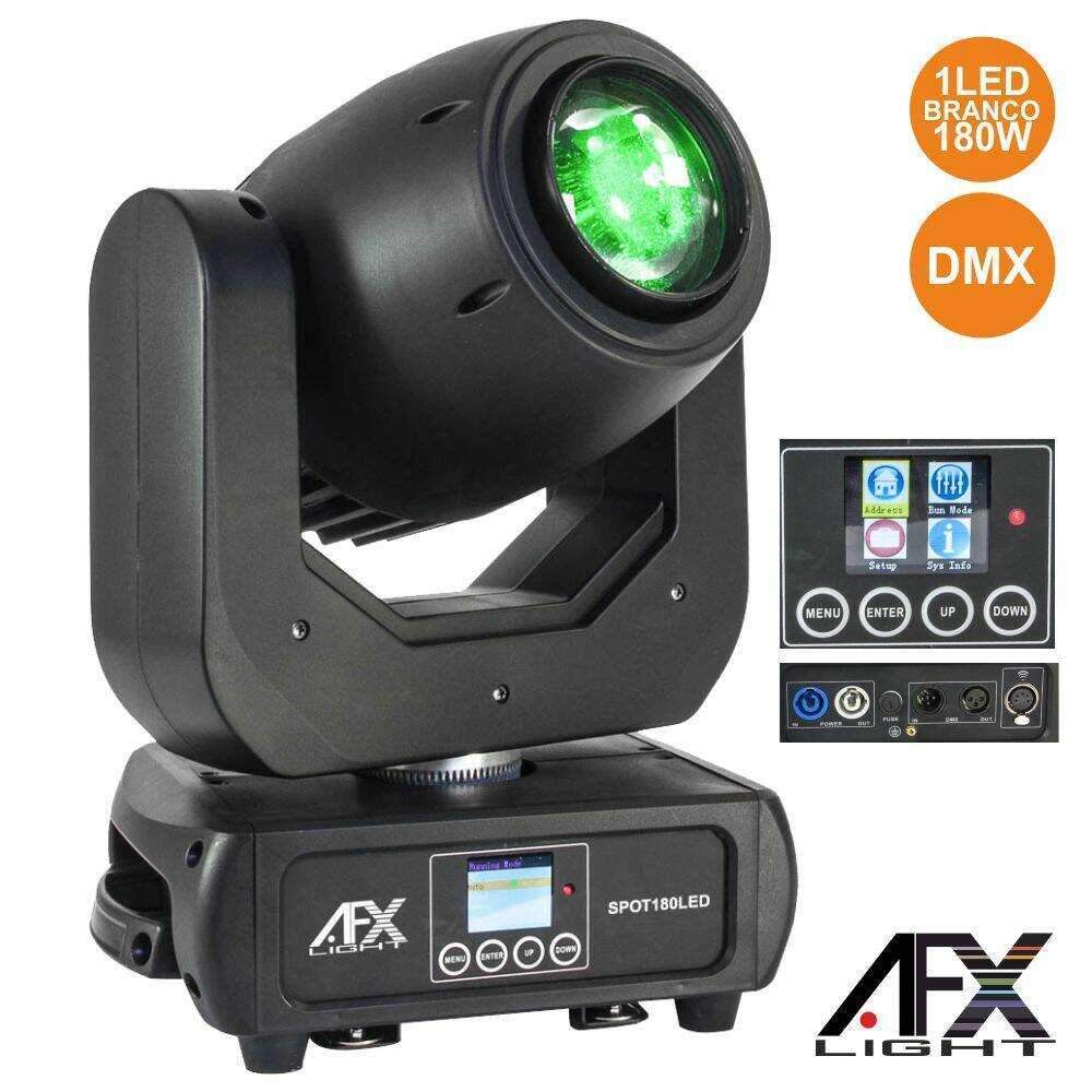 Moving Head Spot 1 LED 180W Branco 3 Rodas Gobo DMX AFXLIGHT