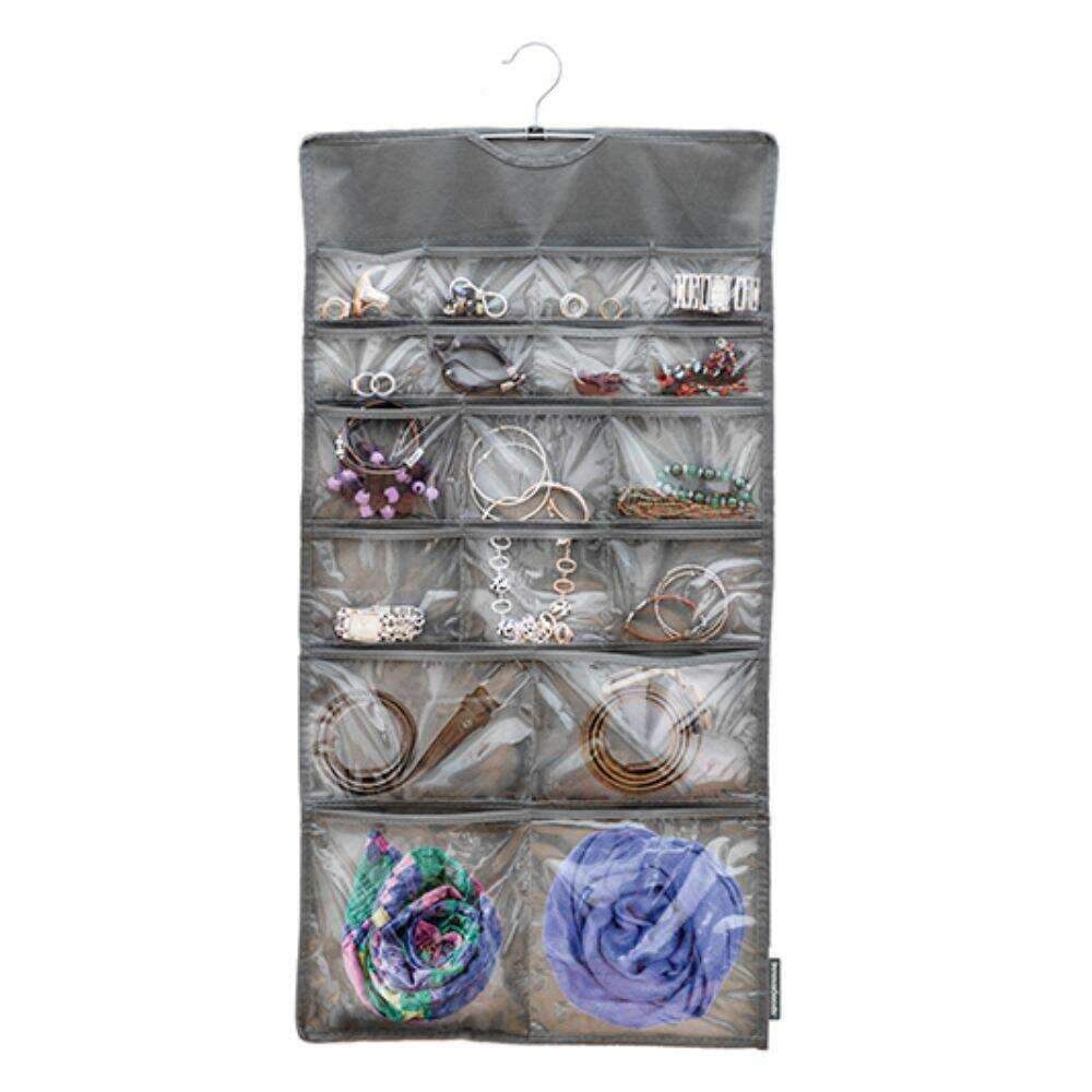– Organizador de jóias e acessórios– Com gancho para suspensão– Design inovador e funcional– Fabricado em poliéster– 36 compartimentos em PVC transparente
