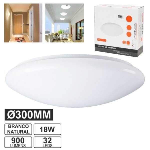 Painel LED Redondo Aplique C/ 32 LEDS 18W 30cm 4000k 900lm