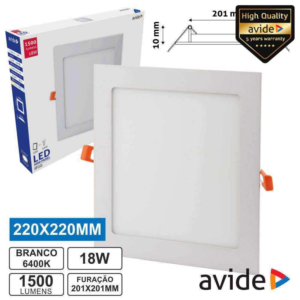 Painel LEDS Quadrado 18W 220mm 6400k 1500lm AVIDE