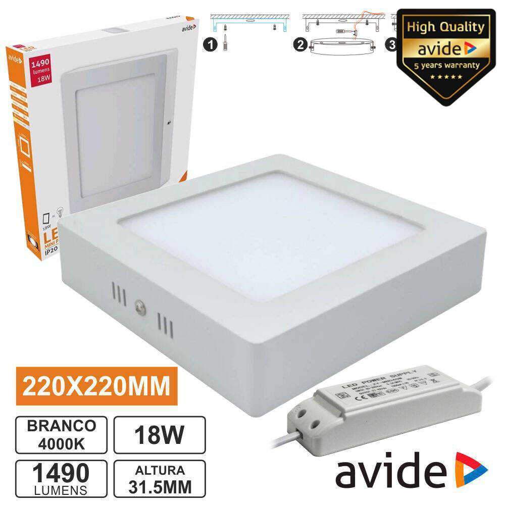 Painel LEDS Quadrado Superfície 18W 220mm 4000K 1490lm AVIDE