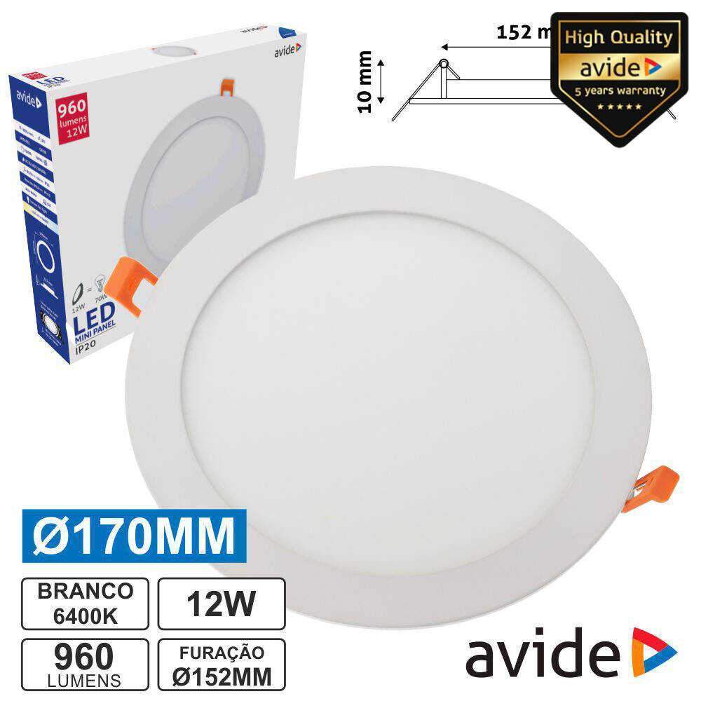 Painel LEDS Redondo 12W 170mm 6400k 960lm AVIDE