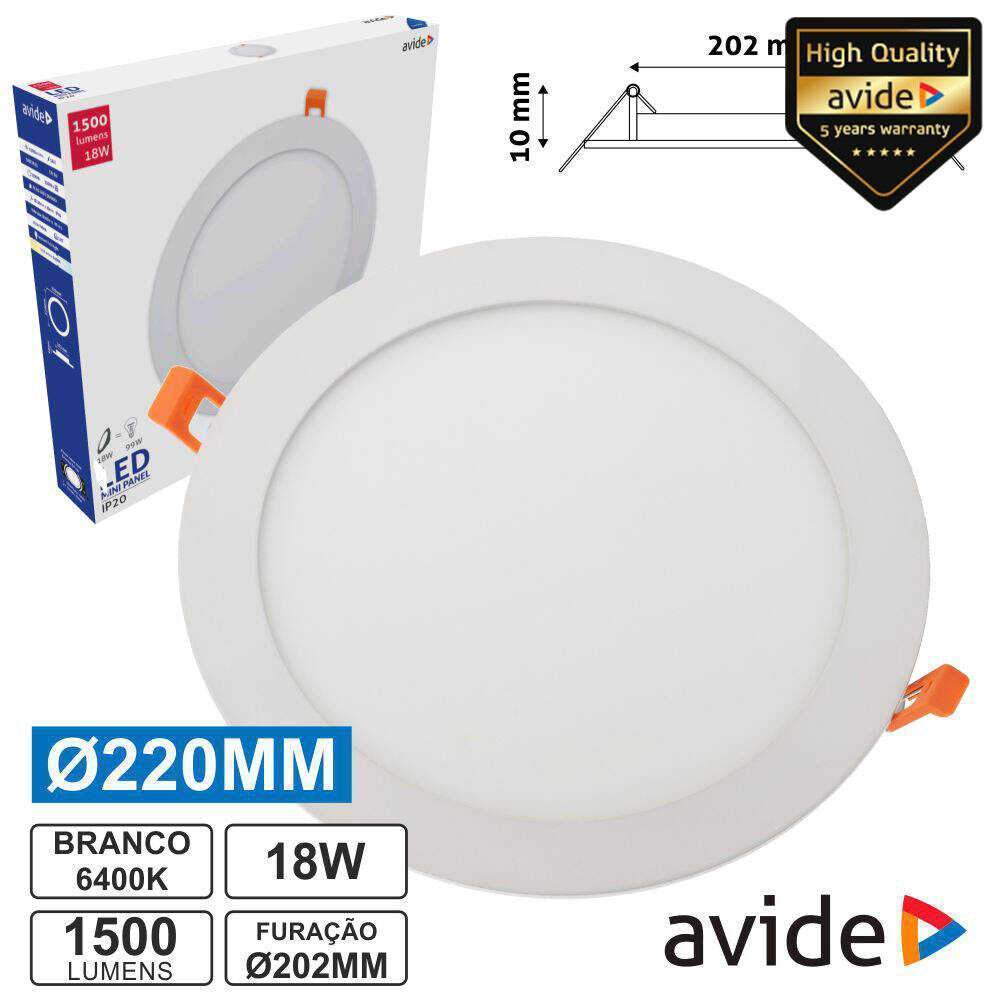 Painel LEDS Redondo 18W 220mm 6400k 1500lm AVIDE