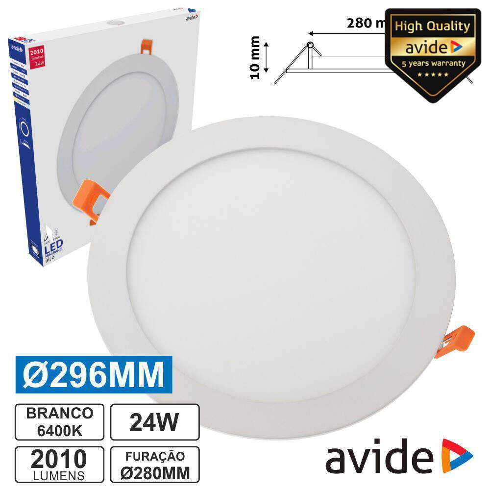 Painel LEDS Redondo 24W 296mm 6400k 2010lm AVIDE