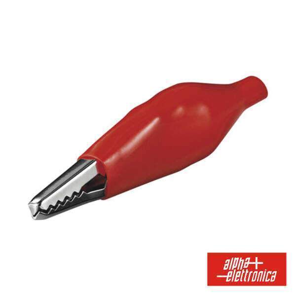 – Pinça tipo Crocodilo isolada Vermelha– Capa protectora em Borracha– Comprimento : 54mm Diâmetro: Ø3mm– Abertura máxima: 11mm, Estrutura em PVC– Disponível em Preto