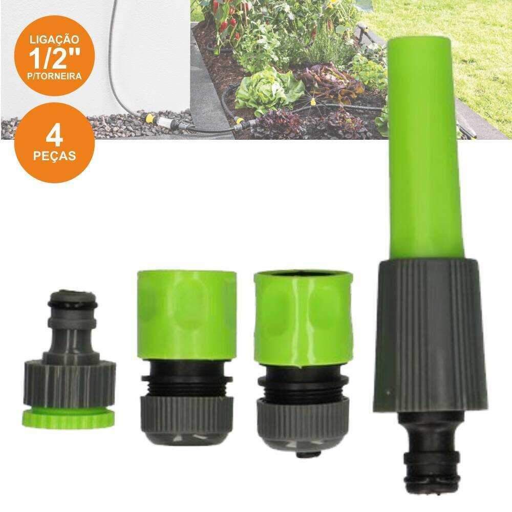 – Pistola de rega c/ adaptadores– Ligação p/ torneira 1/2″– Estrutura em Plástico resistente– Inclui 3 adaptadores p/ torneira