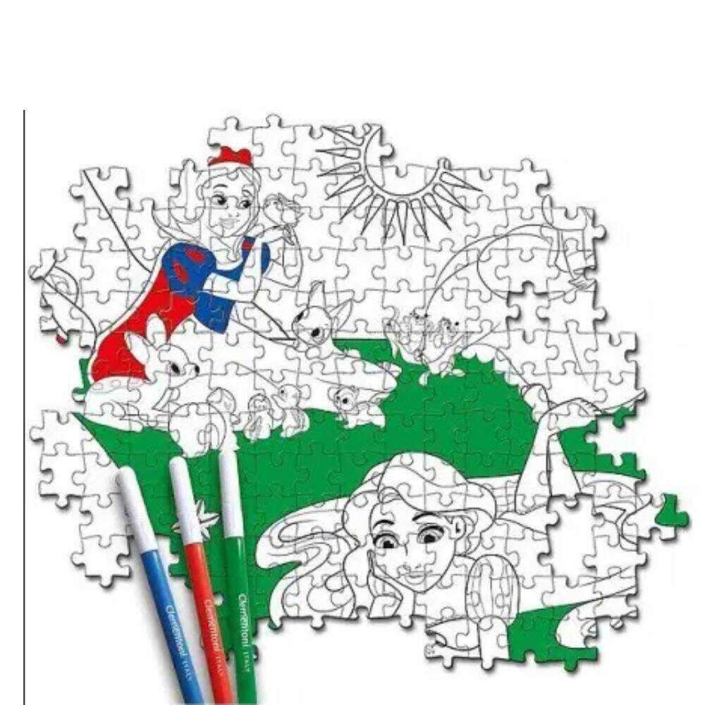 – Puzzle PRINCESS c/ 2 faces p/ colorir– Dimensões: 33.5×23.5cm– Número de peças: 104– Adequado p/ crianças com +6 anos– 3 Marcadores incluídos