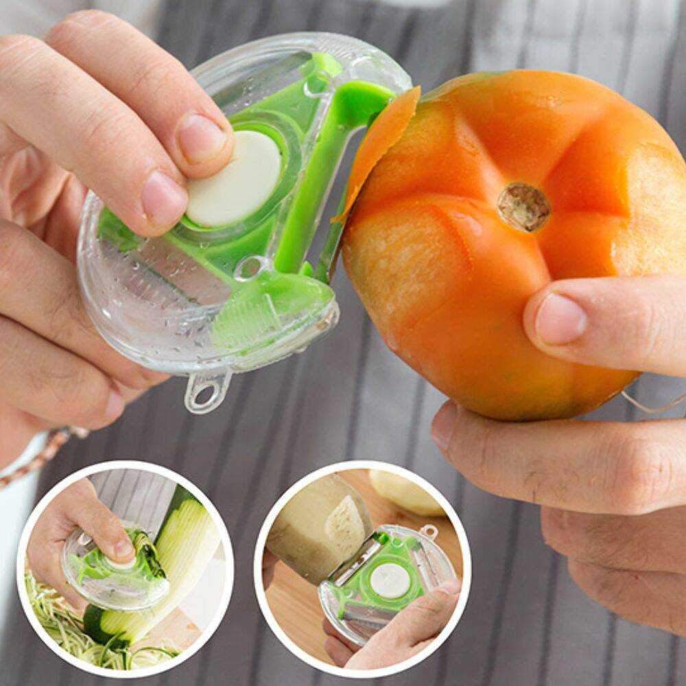 – Descascador e cortador giratório 4 em 1– Fabricado em PP, PMMA e aço inoxidável– Desmontável para facilitar a sua limpeza– Apto para máquina de lavar louça– Seleção de lâmina c/ movimento giratório