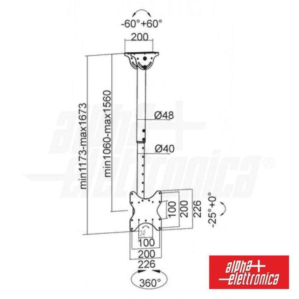 Suporte Lcd/Plasma 23/42″ Tecto C/1 Braço 200/200 50kg ALPHA