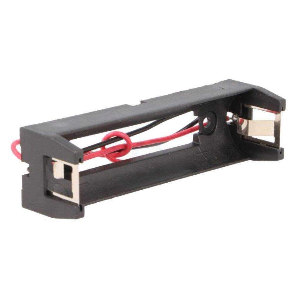 – Suporte p/ 1 Bateria– Adequado p/ 1 Bateria 18650– Estrutura em Plástico Preto– Ligação c/ 2 fios