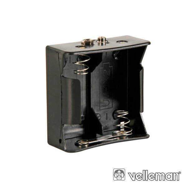 – Suporte p/ 2 Pilhas– Capacidade: 2 Pilhas tipo D– Terminais Snap de encaixe– Estrutura em Plástico Preta
