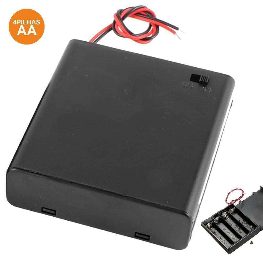 – Suporte p/ 4 Pilhas c/ interruptor– Capacidade p/ 4 Pilhas AA/R6– Estrutura em Plástico Preto– Ligação c/ 2 fios