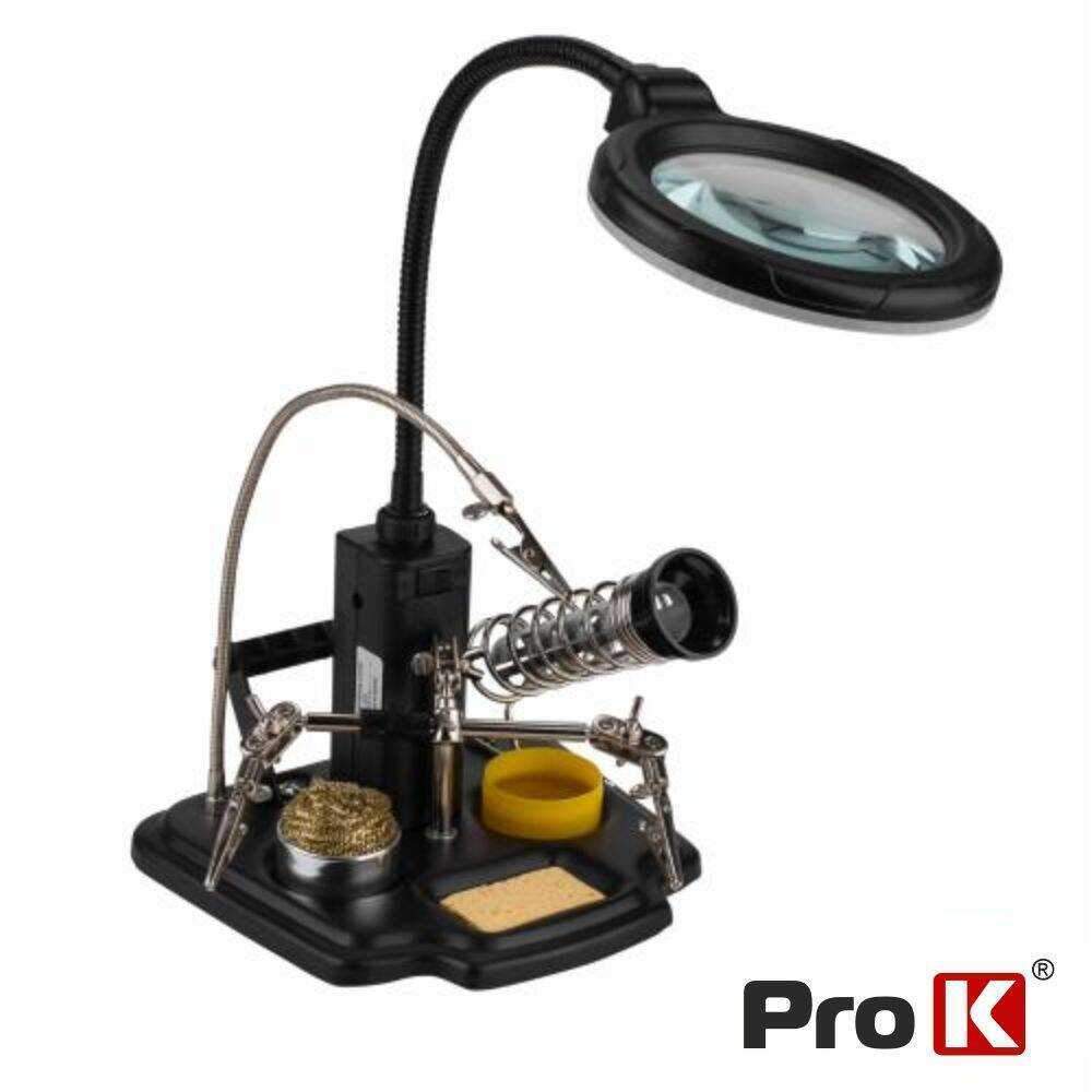 Suporte p/ Soldadura c/ Candeeiro, Pinças, Lupa e Acessórios