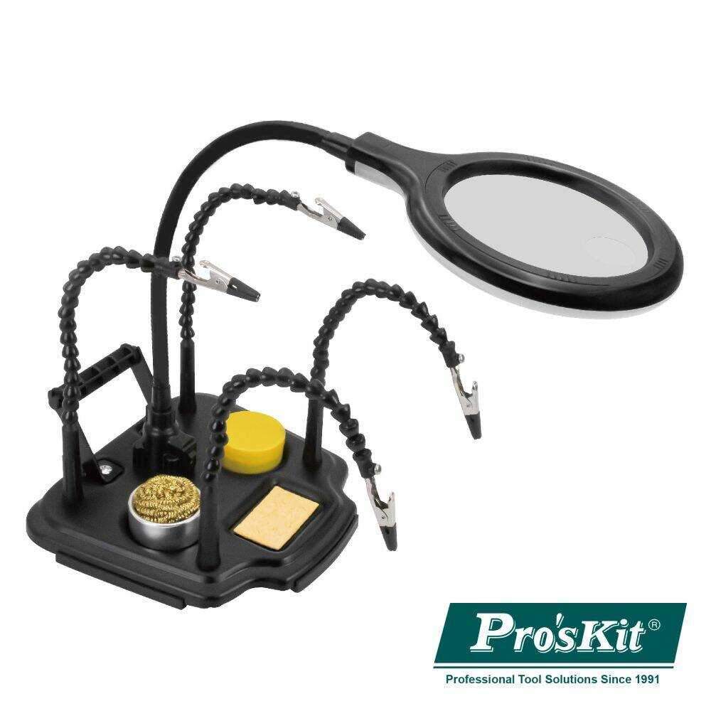 Suporte p/ Soldadura c/ Candeeiro, Pinças, Lupa e Acessórios