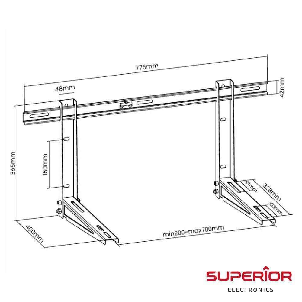 – Suporte p/ ar condicionado– Adequado p/ fixar à parede– Estrutura metálica branca– Capacidade de carga máxima: 140kg
