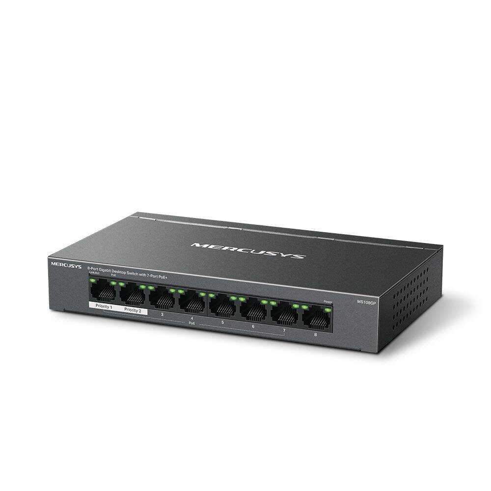 – Comutador HUB Ethernet de 8 Portas– 7× portas PoE+– 65W PoE – Modo de extensão/VLAN– Compatível com 802.3 af/at PD