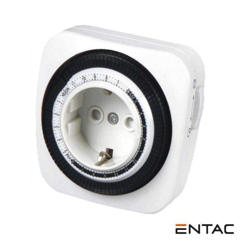 – Temporizador analógico 24 horas– Activa e desactiva aparelhos elétricos– Até 48 programas num período 24 horas– Intervalo ajustável por 15 minutos– Tensão funcionamento: 230Vac, 3680W@16A