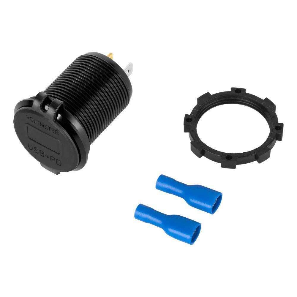 Tomada Dupla USB-A / USB-C de Embutir C/ Voltímetro QC3.0