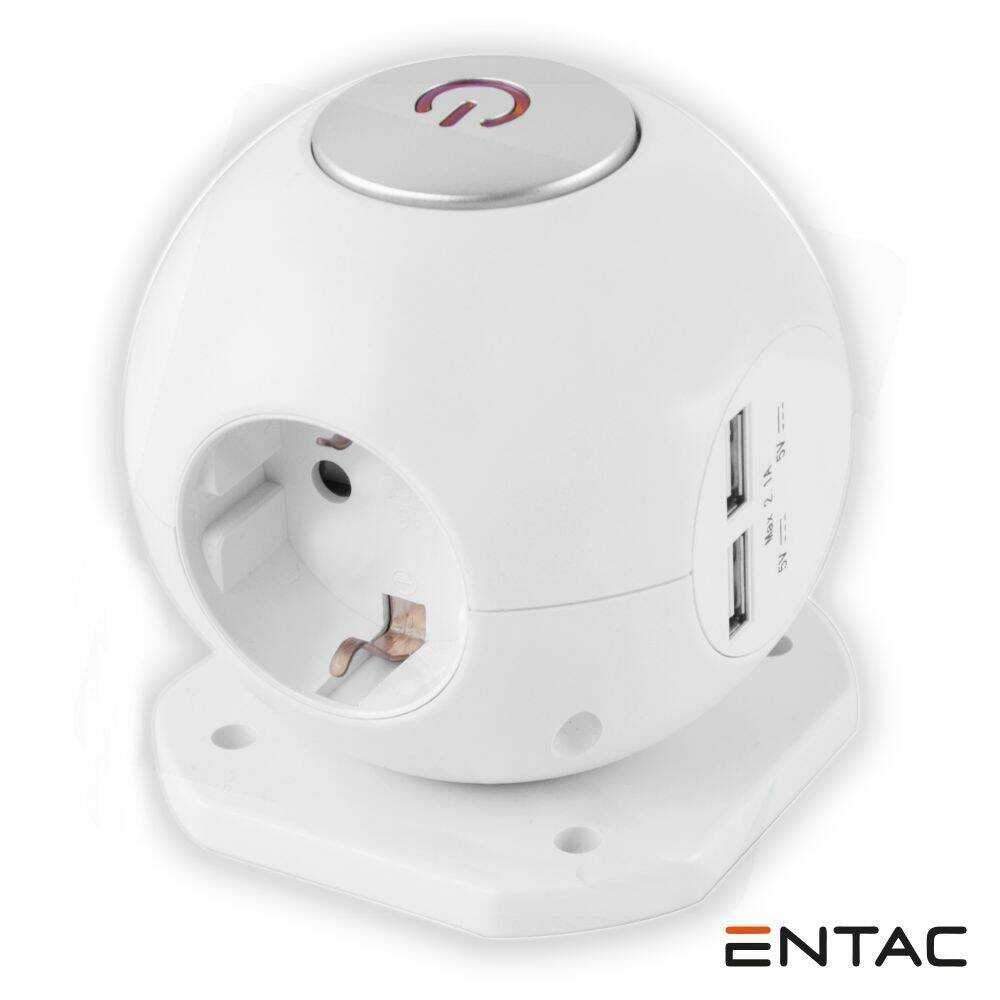 Tomada Elétrica 3xSchuko 2xUSB-A C/ Interruptor 1.5m ENTAC